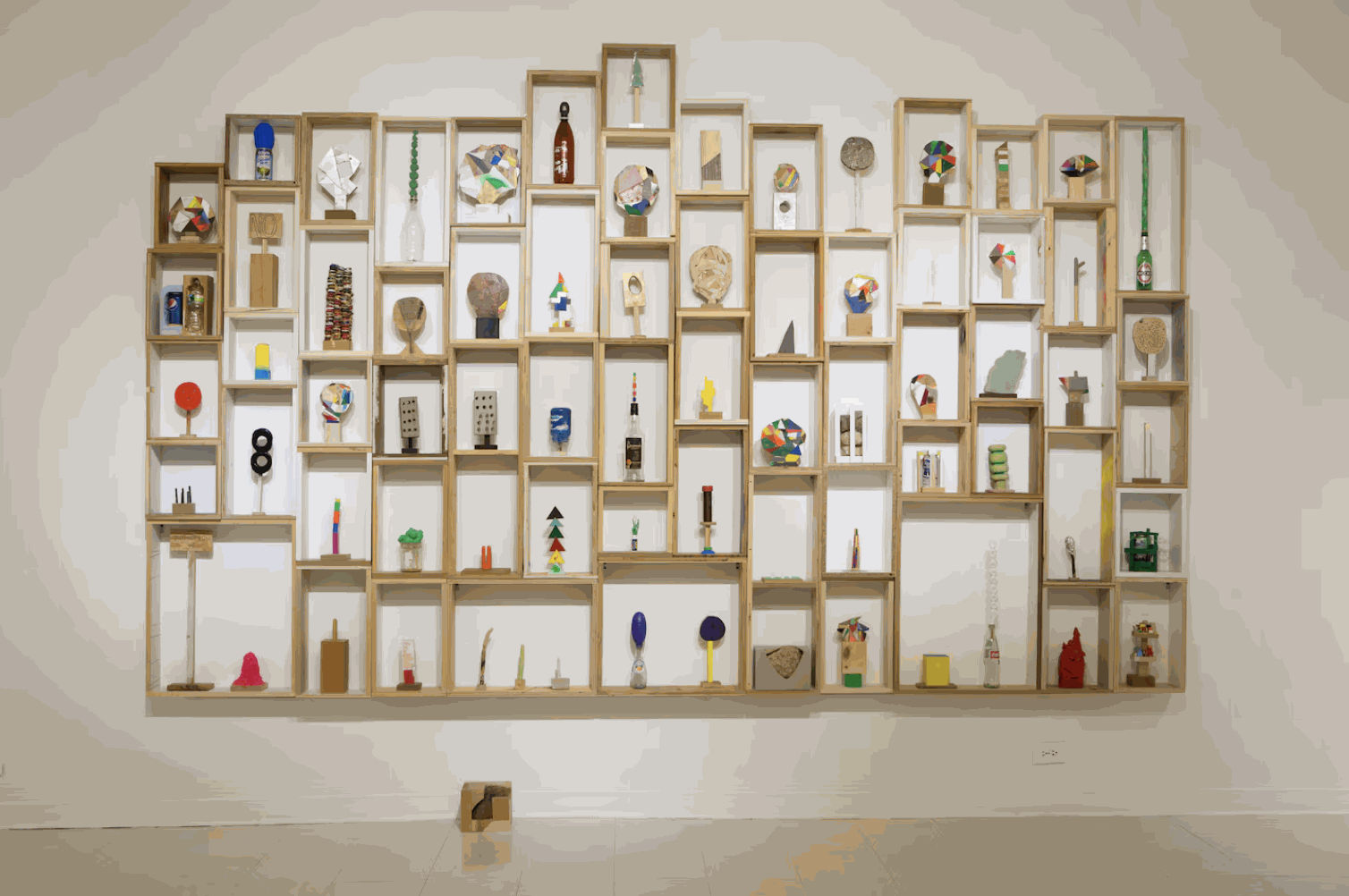 Damien Hoar de Galvan's mixed-media sculpture series "Something Could Happen at Any Moment" (2010-15) on view at the Montserrat College of Art in 2015.Damien Hoar de Galvan